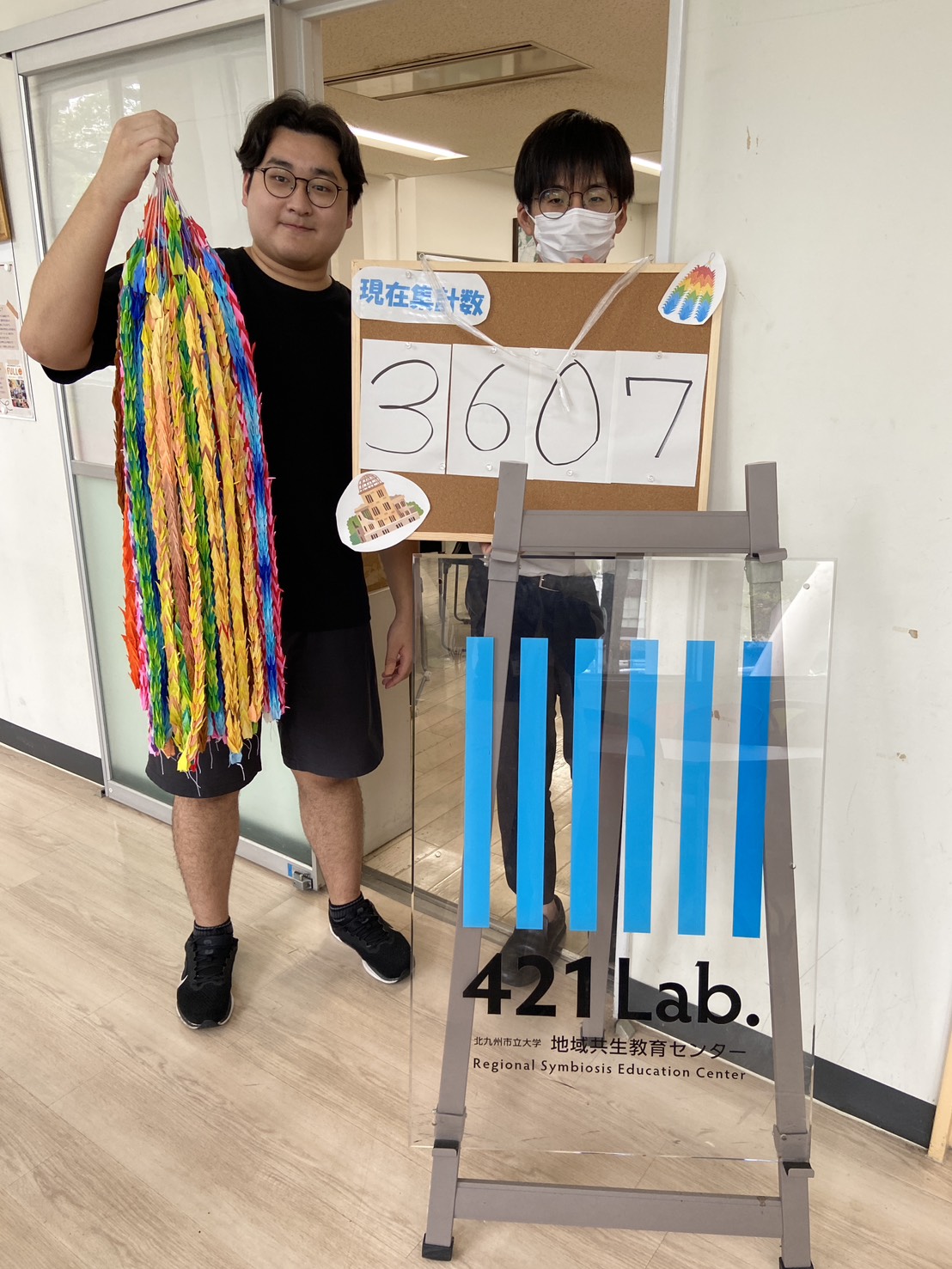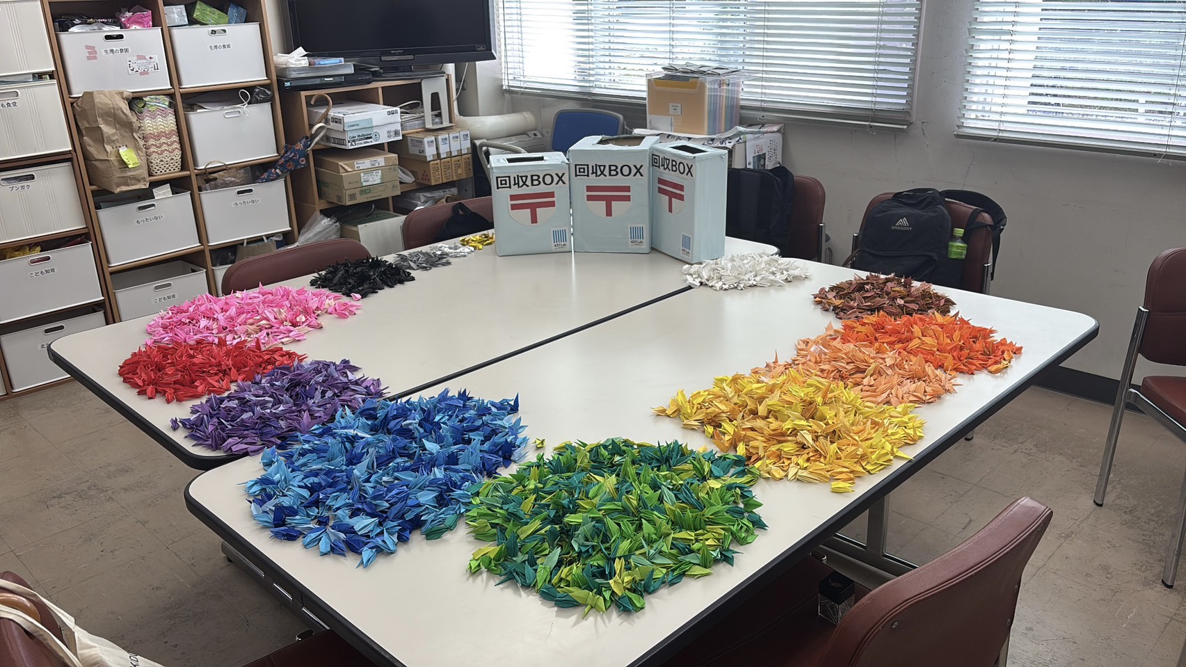 戦後80年の節目の年に「戦争の記録の風化を防ぎ、平和について考える場を学内につくる」ことを目的に、6/30(月)~8/8(金)の期間、学内5か所に設置させていただいた「1,000羽鶴プロジェクト企画」ですが、たくさんの方々にご参加いただいたおかげで【3,607羽】もの折り鶴が集まりました。皆さんの心のこもった折り鶴を一つにまとめ上げ、9/11(木)~9/12(金)に広島平和記念公園へ奉納してまいりました。