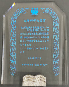 文部科学大臣様より子ども食堂応援プロジェクトへ、「文部科学大臣賞」をいただきました。