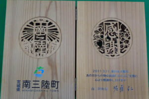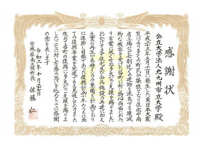 宮城県南三陸町長様より北九州市立大学へ、東日本大震災の復興事業支援活動に対して感謝状をいただきました。