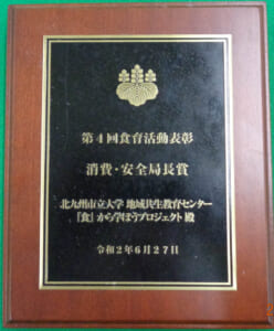 農林水産省消費・安全局長様より『食』から学ぼうプロジェクトへ、「消費・安全局長賞」をいただきました。