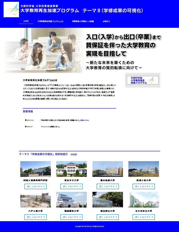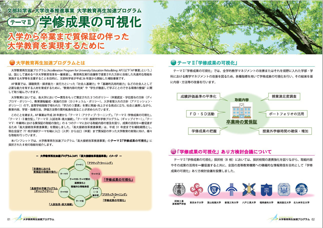 平成26~28年度の本学の事業内容を踏まえて、中間報告書を製作しました。これまでのAP事業の取組内容について、目標と成果・今後の課題と取組みを明確化し、事業全体の完遂に向けた整理を行うとともに、関係者への周知を行いました。