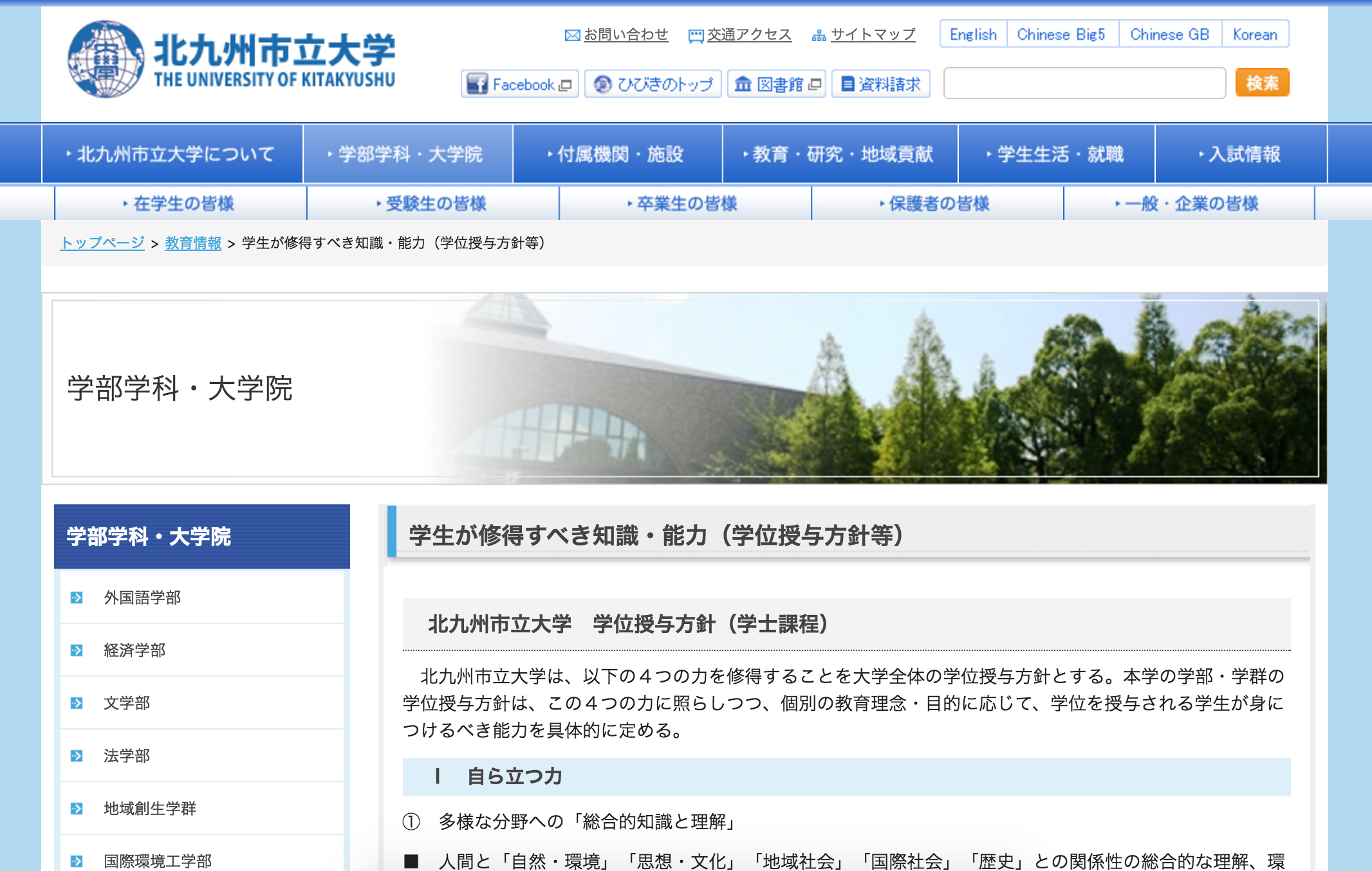 授業外学修時間については、1週間のおおよその学修時間を①通常授業期間中、②試験期間中、③夏季・冬季休暇中の3期間について調査し、平均7.02時間となりました。また、北九州市立大学の学位授与方針に基づき学修到達度を調査した結果、いくつかの項目でポイントの高い学科もありましたが、学年別では差がなく、あまり有意な傾向は見られませんでした。