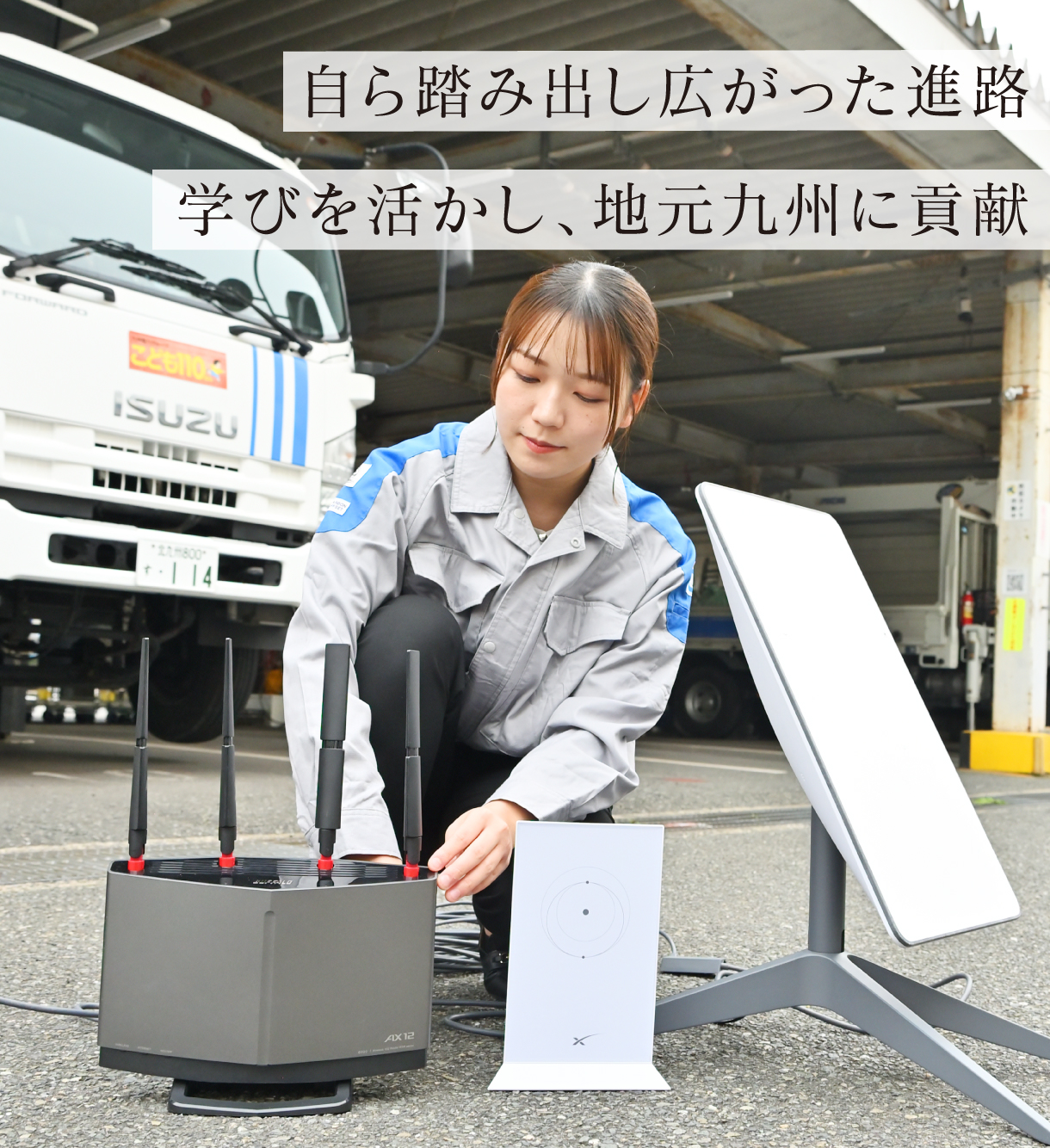 やりがいを感じるところは? - 私は電子通信部門に所属しており、現在は九州電力送配電でケーブルの移設工事や電波の通路を確保するための伐採業務を担当しています。また、支社のDX推進チームや女性の活躍推進チームにも参加し、他部門の方と連携しながら通信以外の業務にも取り組んでいます。