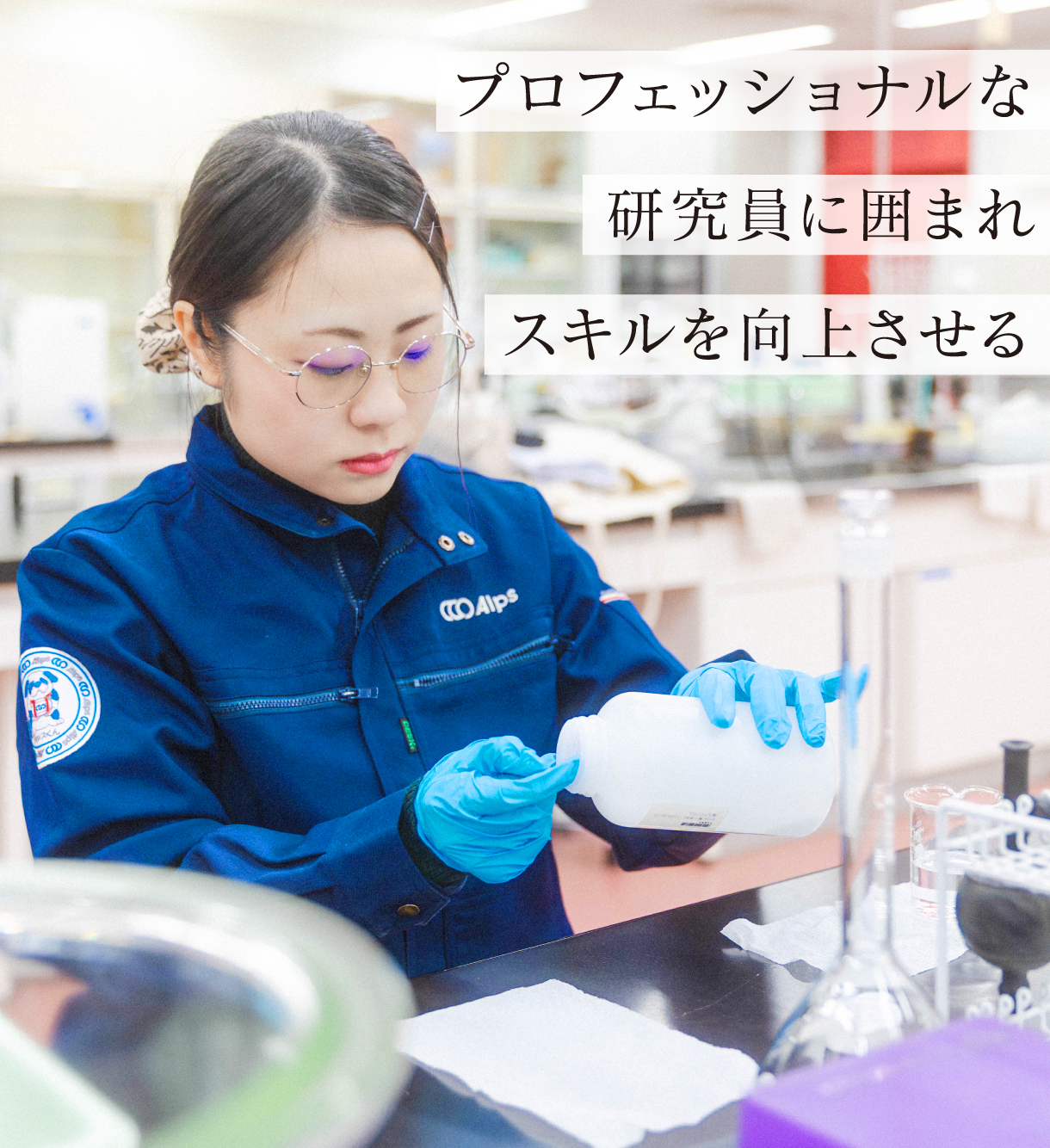 現在のお仕事を選択されたきっかけは? - 研究開発業務に学士卒であっても、携われる仕事を探しているときに見つけました。プロフェッショナルな人々に囲まれ、スキルを向上させつつ、興味深い研究に携わることが出来ると考えこの仕事を選びました。