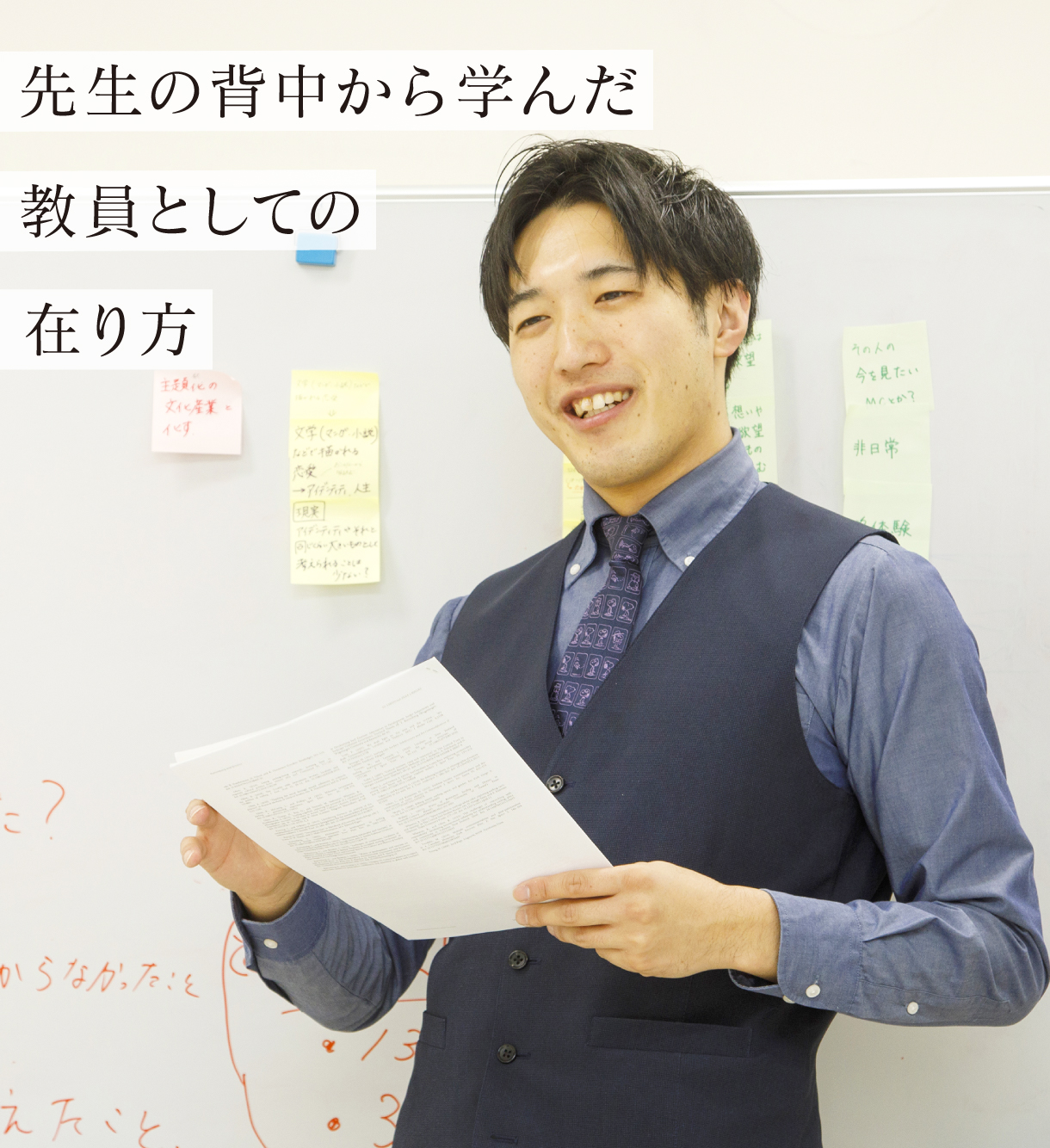 現在のお仕事で役に立っていることは? - 北九州市立大学では、大学内だけでなく地域においても多くの学びを得ることができ、座学で身につけた知識をフィールドで応用できる環境にありました。その経験を通じて、実行力や発想力が培われたと感じています。もとより、大学教員としての在り方の根幹を先生方の背中を見ながら学ばせていただいたことが今一番仕事で役立っていることだと思います。実際に授業をつくる立場になってみて、教育の難しさや奥深さを改めて実感しています。