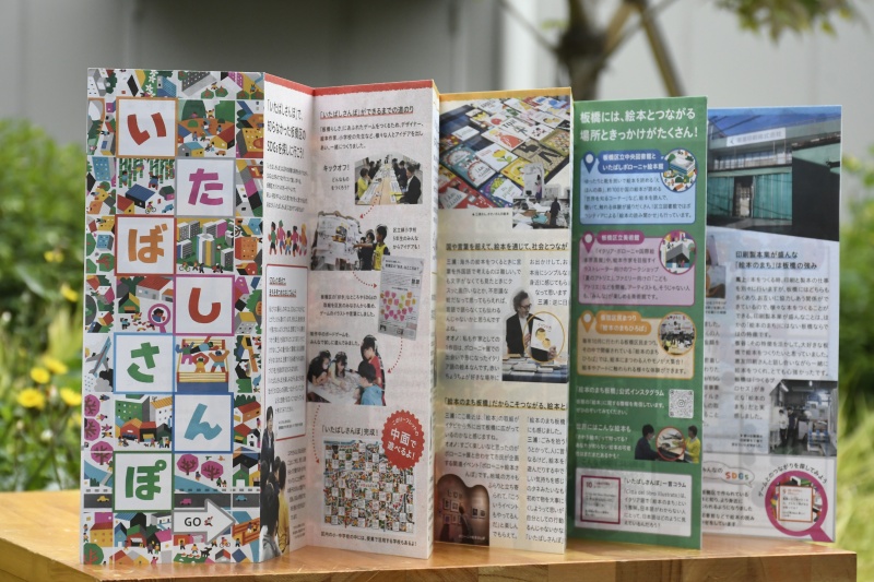 「いたばしさんぽ」は、絵本『くっついた』や『ちいさなおうさま』などの作者である絵本作家の三浦太郎さんがイラストを手がけており、英語版も発行されています。「いたばしさんぽ」の盤面が印刷されたリーフレットは、区立小・中学校に通う児童・生徒に配布されています。
