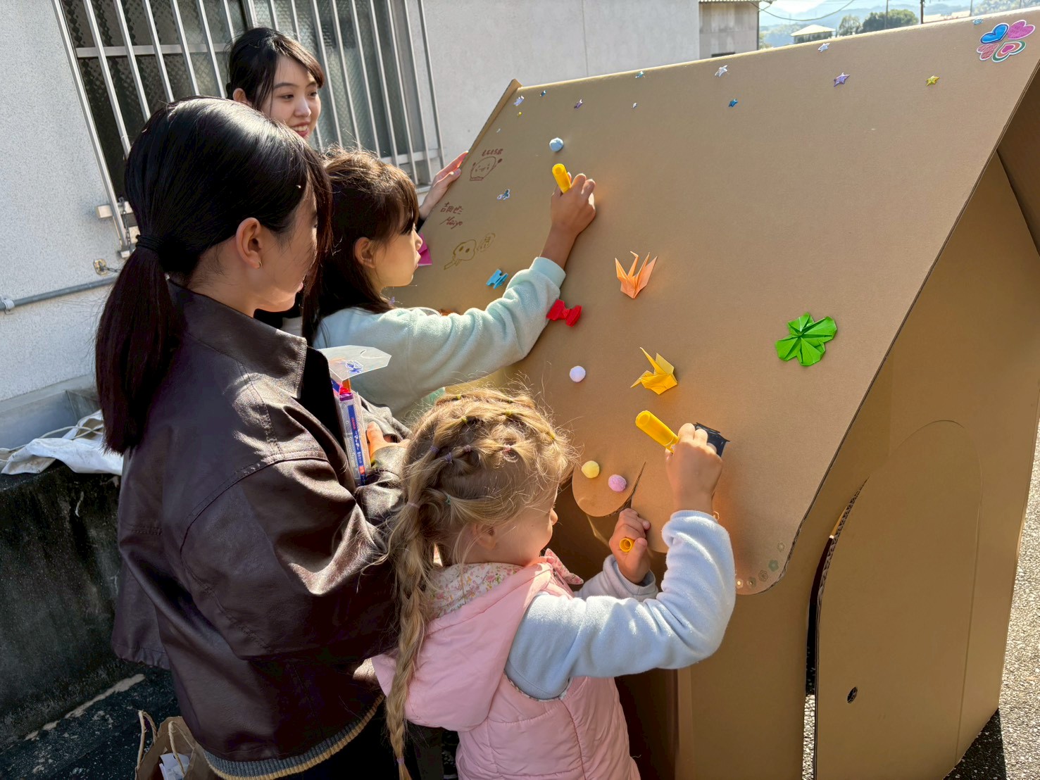 政策科学科の学生は4つのグループに分かれ、タイ、韓国、カンボジア、アメリカ、ドイツ、イギリス、オーストラリア、台湾からの留学生や高校生と一緒に、イベント企画と当日の進行を行いました。