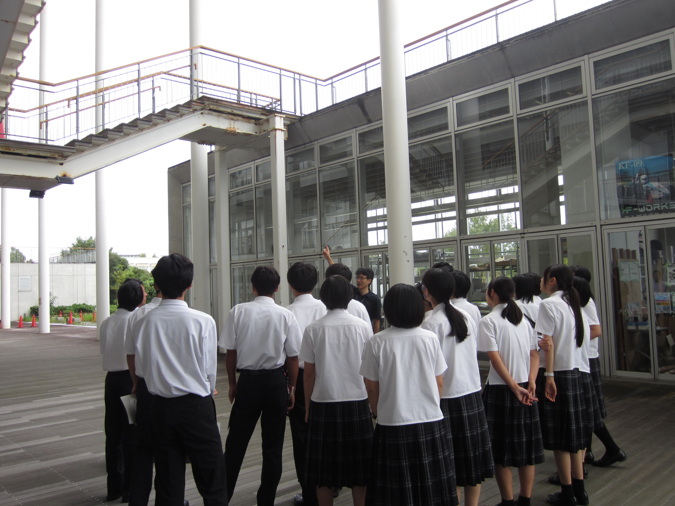 9月26日(金)、福岡工業高等学校の皆さんがひびきのキャンパスに来てくれました。大学の概要説明では国際環境工学部の全学科の学びの特長や就職状況等について説明を受けました。その後のキャンパスツアーでは、職員から研究室やウッドデッキ等について説明を受けました。また、機械システム工学科の長准教授による自動車や形状記憶合金についての模擬授業を60分間受講したり、学食でランチ体験をしたりするなど盛りだくさんの内容を楽しんでいただきました。今回の訪問が、理系進路に進んだ時の自分の未来の姿をイメージするきっかけになってくれたらうれしいです。ありがとうございました!