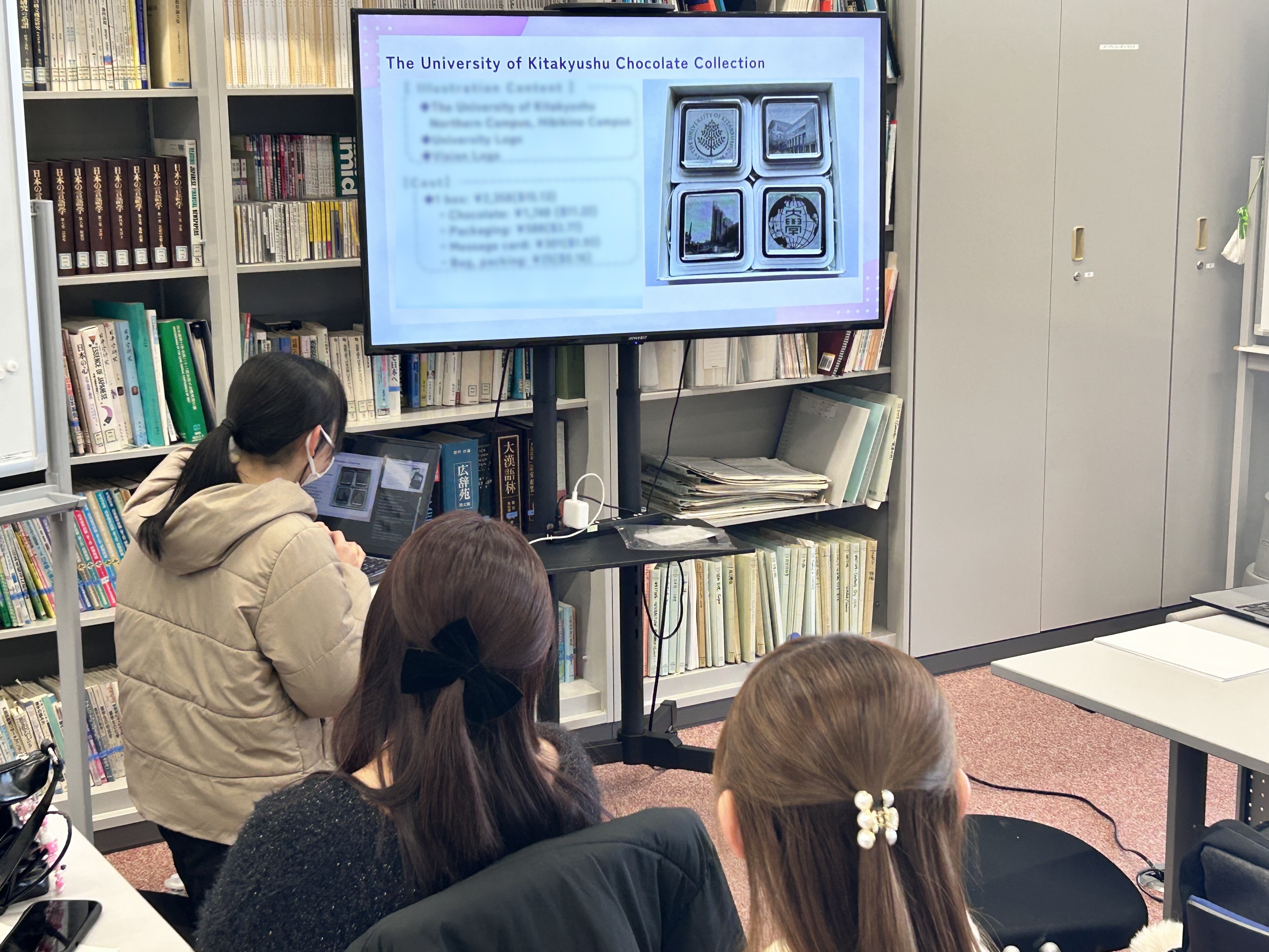 2026.2.18 広報スタッフ日記 情報システム工学科3年の祖田来夏さんが、「北九大ショコラコレクション」を制作しました! 情報システム工学科3年生の祖田 来夏さんが、北九州市立大学オリジナル商品として、「北九大ショコラコレクション」を制作しました 本商品は、「アントレプレナーシップ実践」という授業の一環として、同窓会助成金を活用し、企画からデザイン、制作までを一貫して行ったものです。先日は、制作に至るまでの取り組みを紹介するプレゼンを行いました。 チョコレートは、大学の歴史や想いを表現したパッケージとともに、学校訪問時のお土産などでの活用を想定しています。